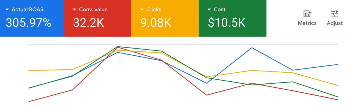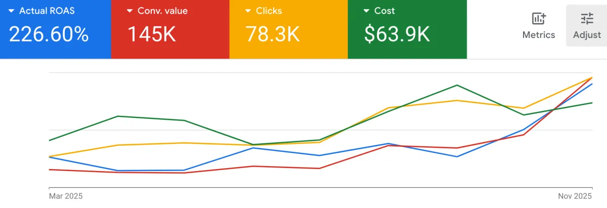 We make data-driven decisions based on Shopify and Google Ads metrics such as new customer acquisition costs (aka aMER or nCAC), return on ad spend (ROAS), and contribution margin. If we don't think we can hit your goals and drive real results, we will let you know and not take you on as a client.